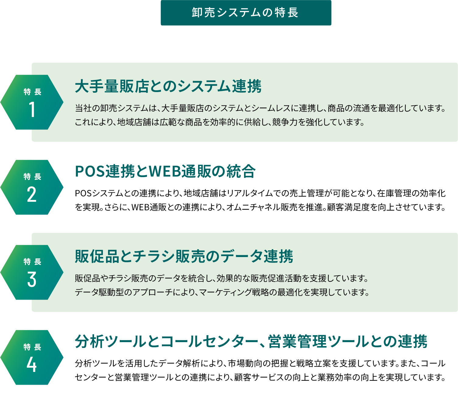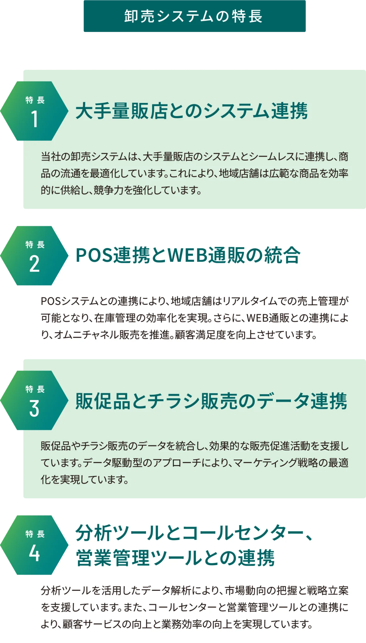 当社の卸売システムは地域店舗の成長と競争力強化に寄与しており、持続
